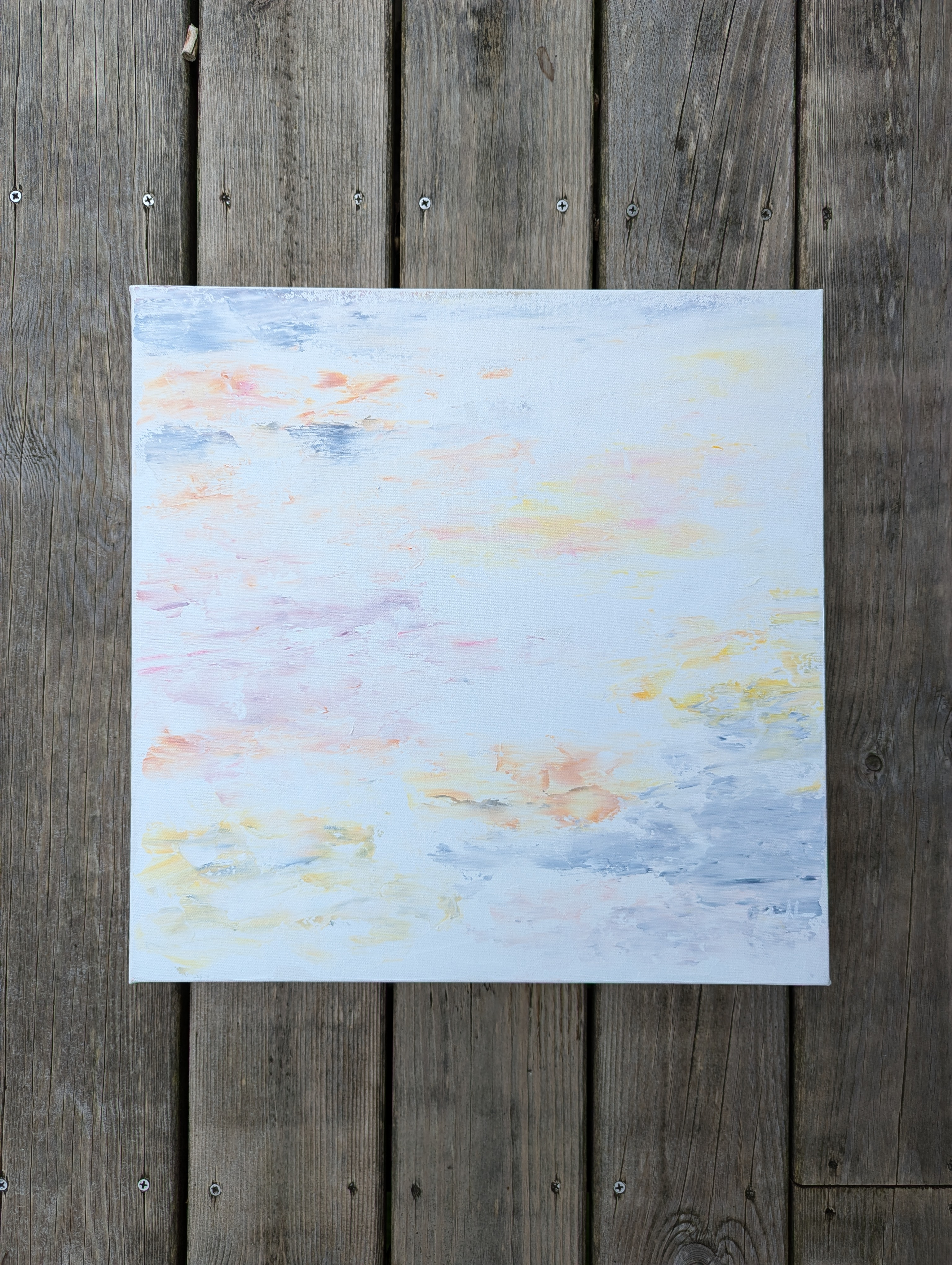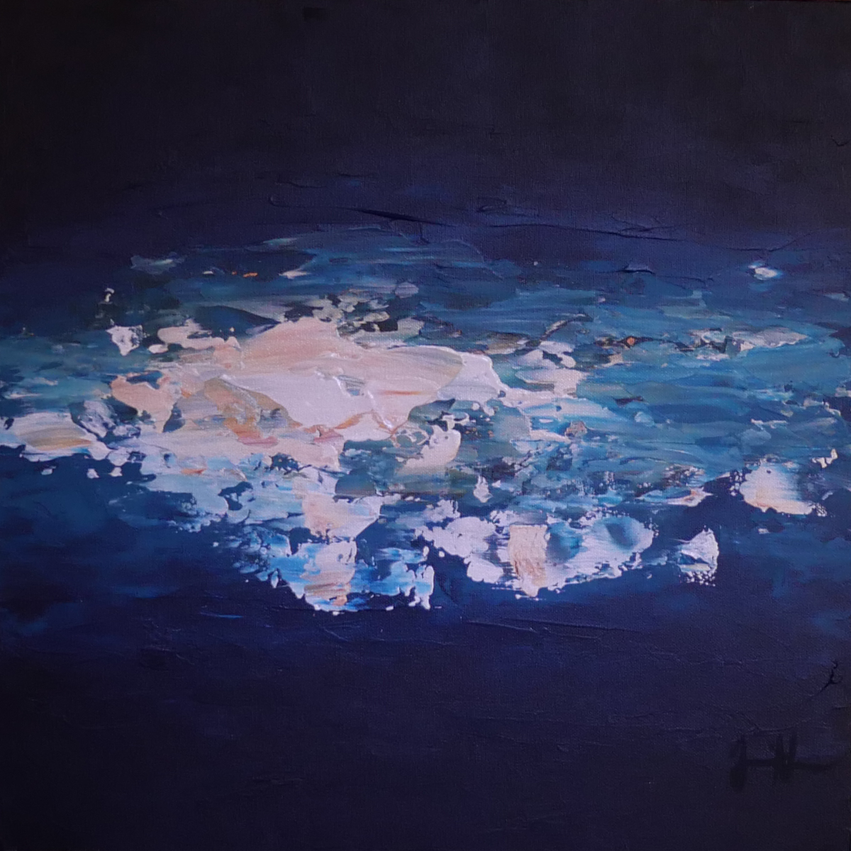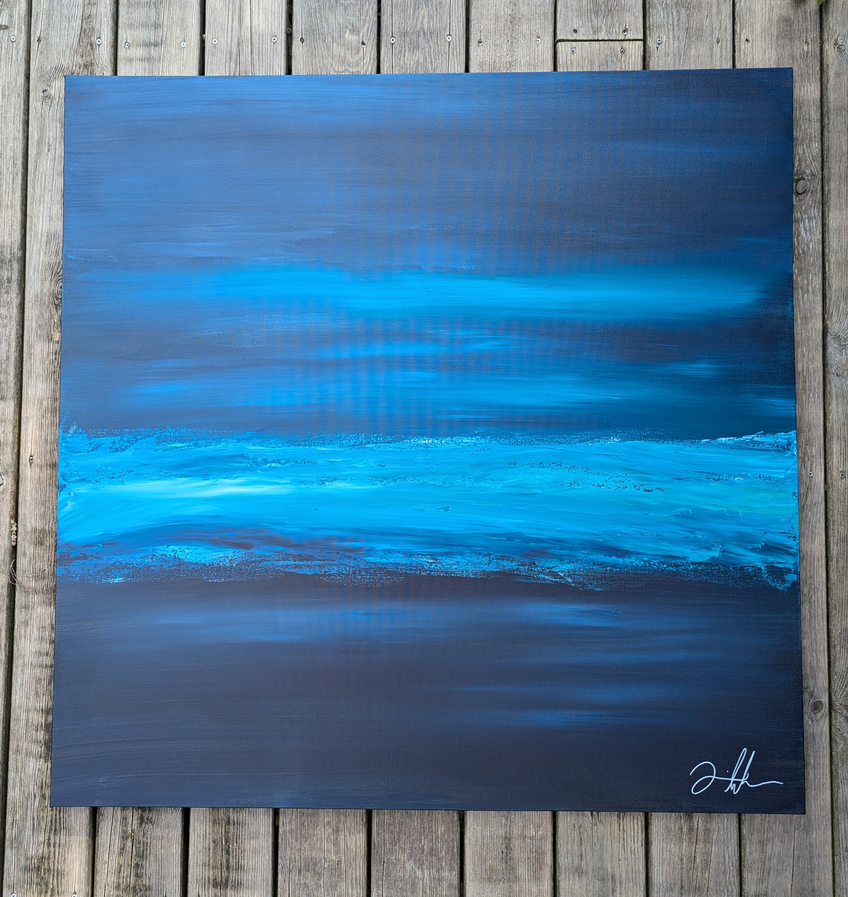 The Dream is an abstract acrylic painting on a 100cm x 100cm canvas. It's part of the Ocean series taking inspiration from the family summer place.