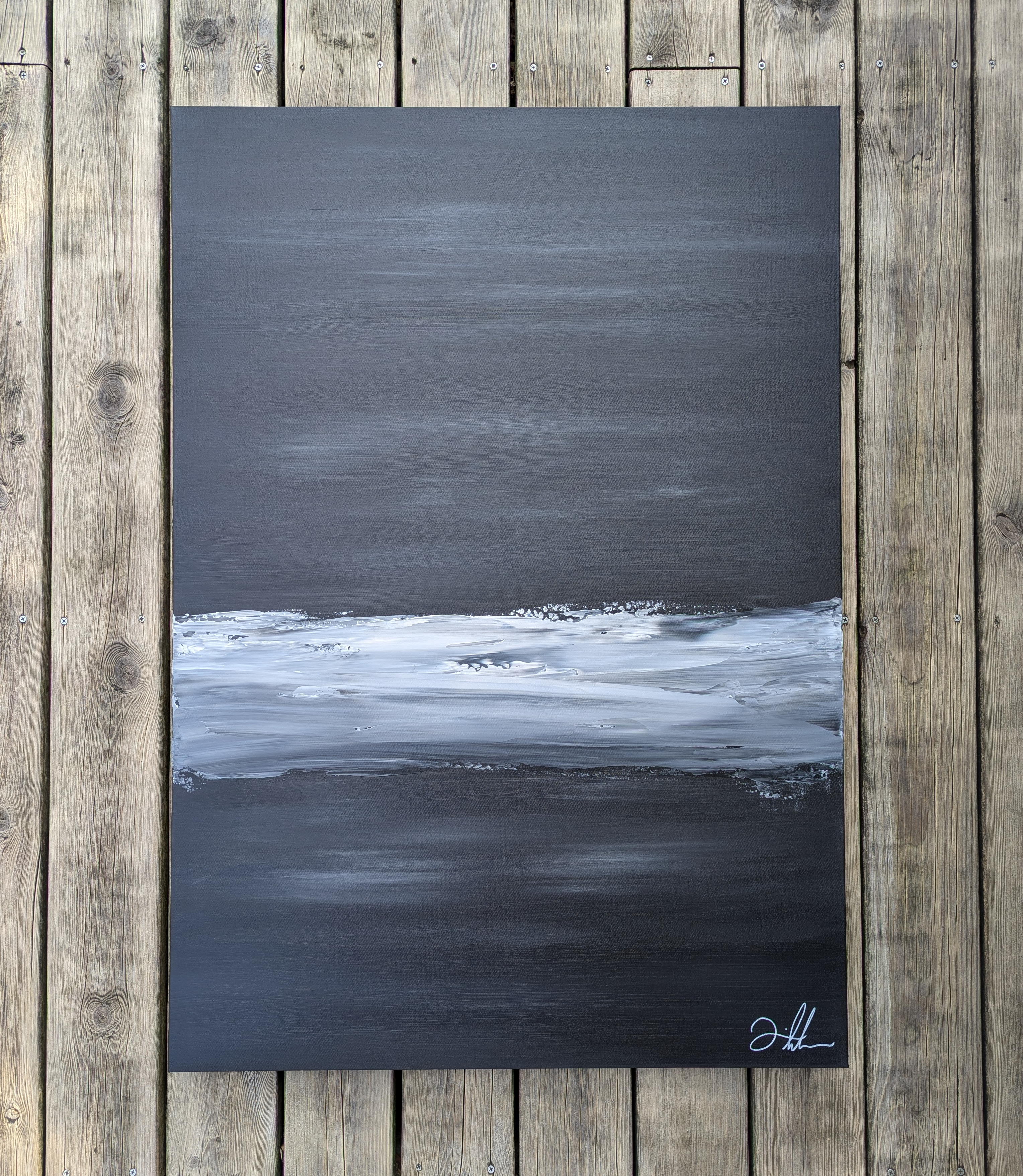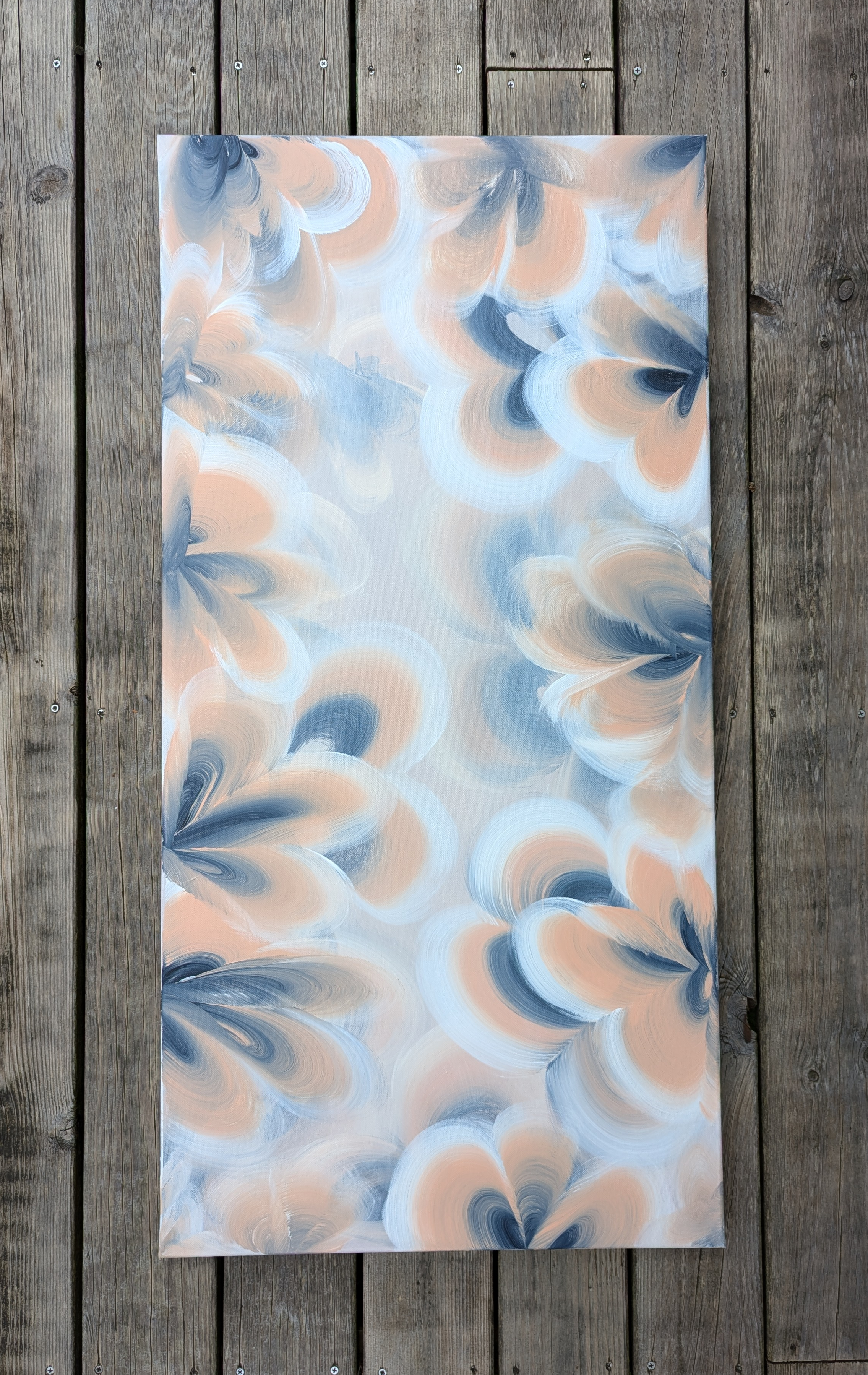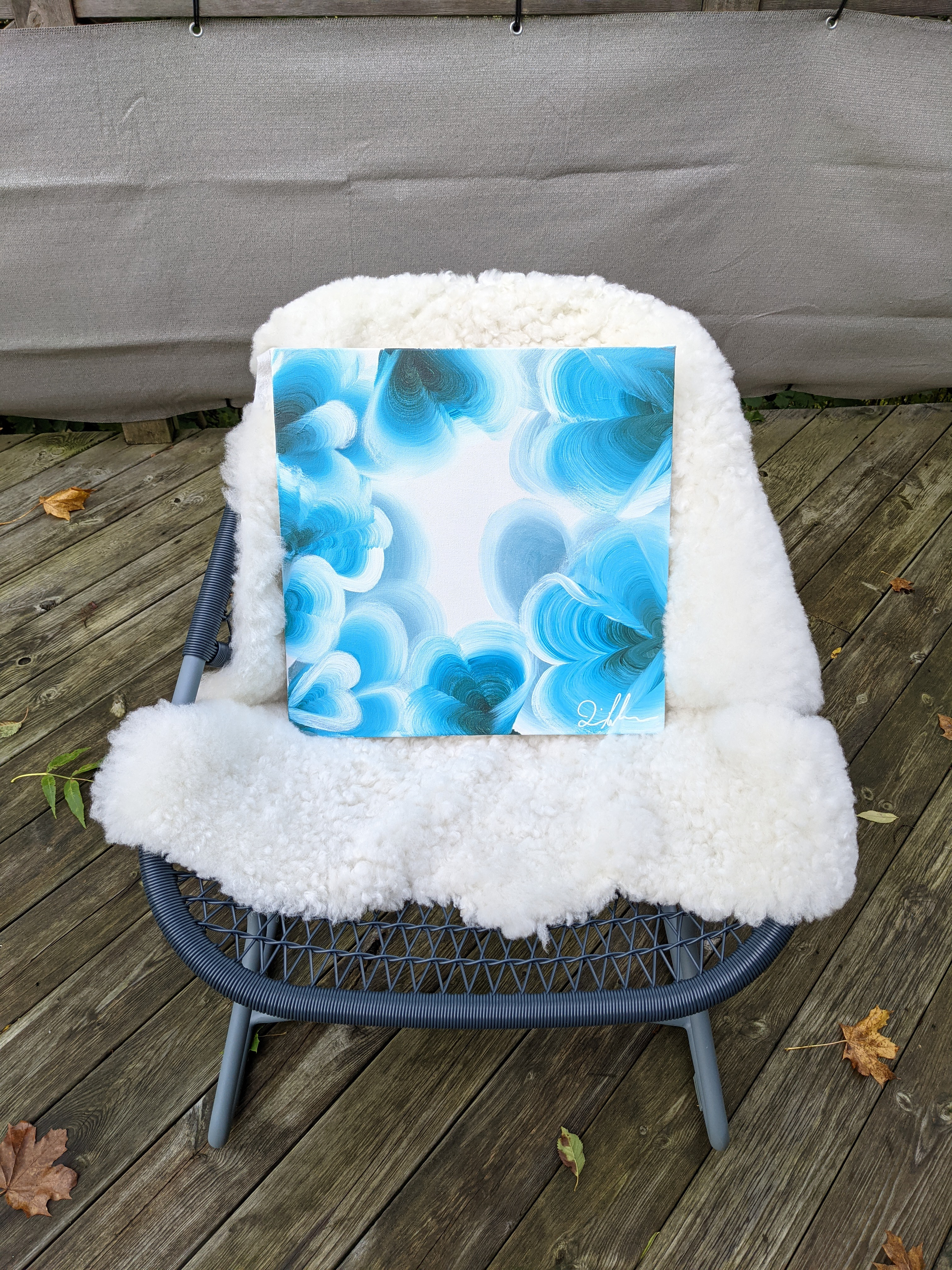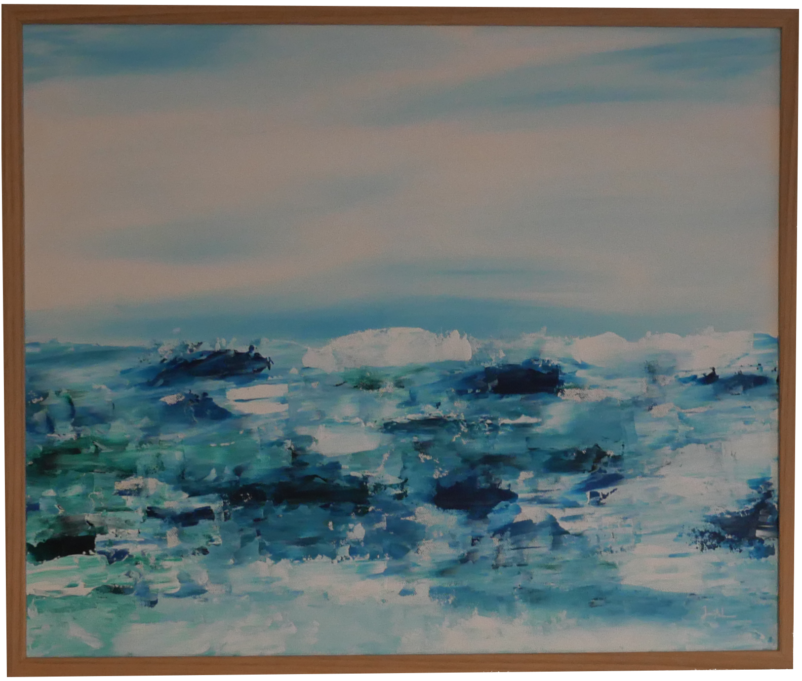 The Dream is an abstract acrylic painting on a 100cm x 100cm canvas. It's part of the Ocean series taking inspiration from the family summer place.