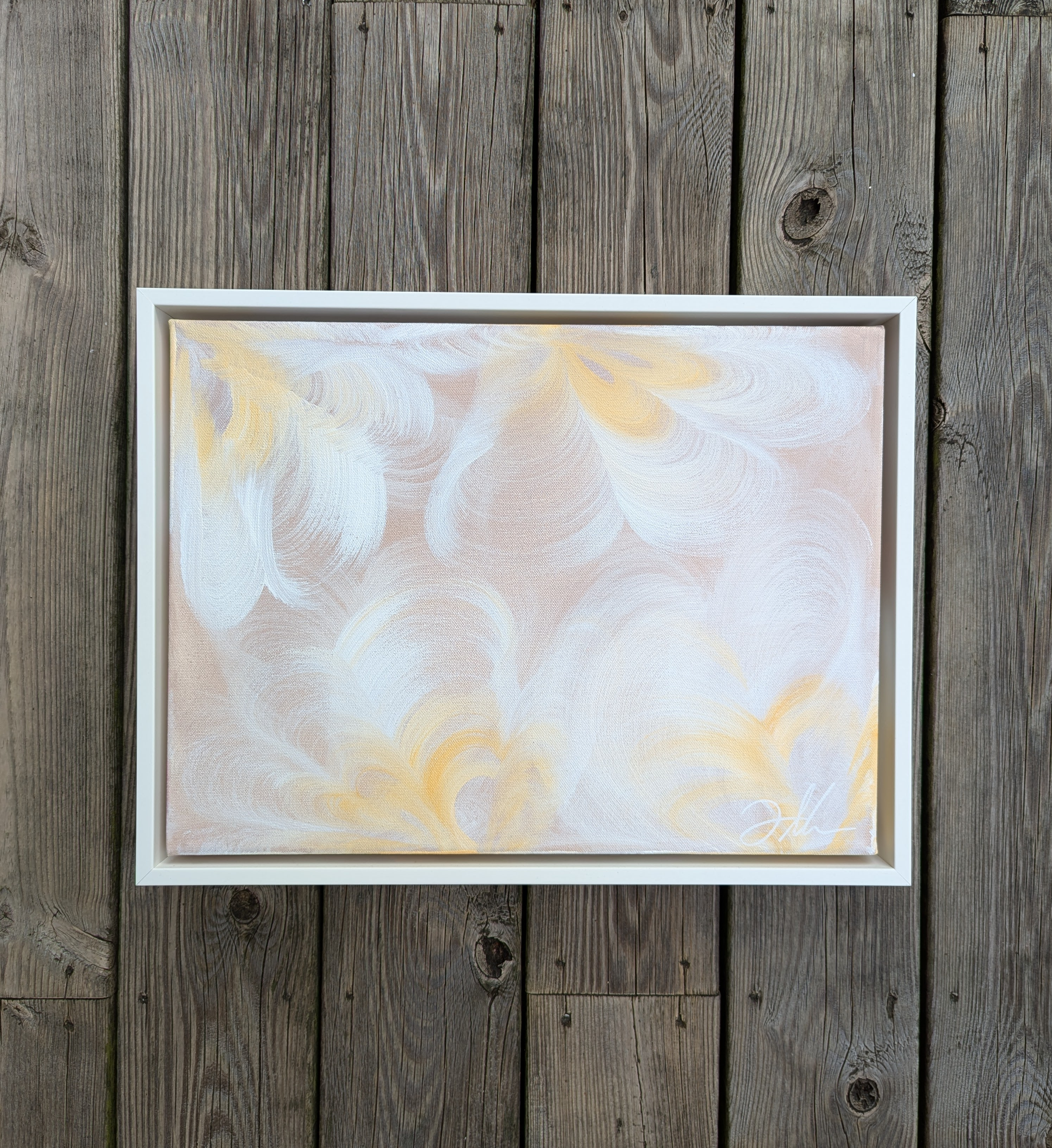 24cm x 30cm, framed in white wood floating frame